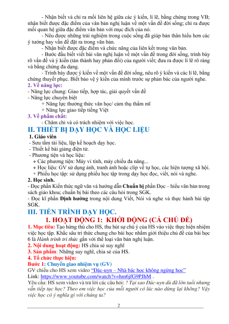 chứng thuyết phục. Biết bảo vệ ý kiến của mình trước sự phản bác của người nghe. 2. Về năng lực: