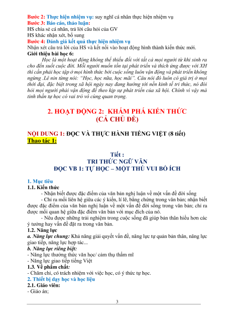 ĐỌC VB 1: TỰ HỌC – MỘT THÚ VUI BỔ ÍCH 1. Mục tiêu 1.1. Kiến thức