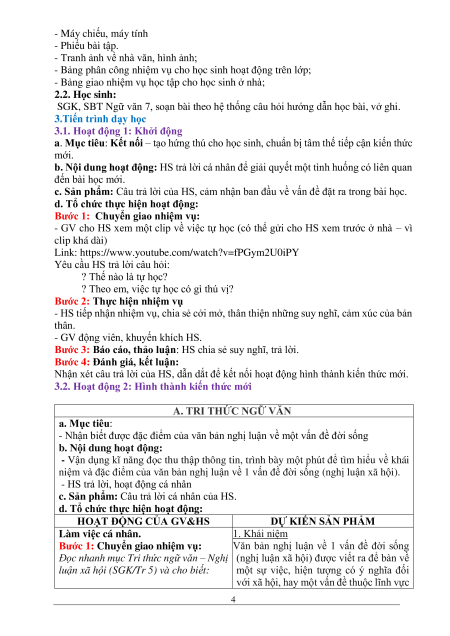 2. Thiết bị dạy học và học liệu 2.1. Giáo viên: - Giáo án; 3 - Máy chiếu, máy tính - Phiếu bài tập.