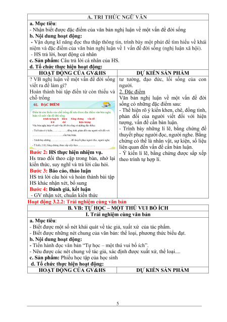 Tri thức đọc hiểu + Đọc: VB …../ … / 2022 Tự học –