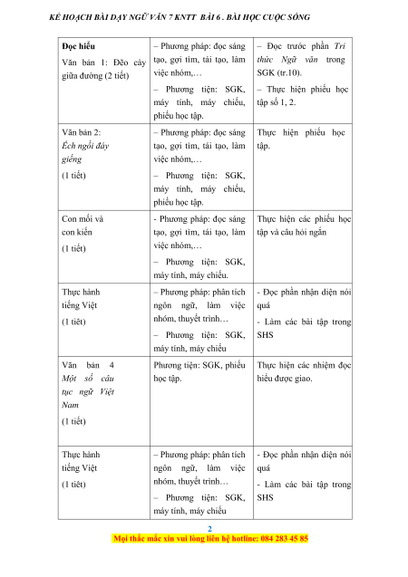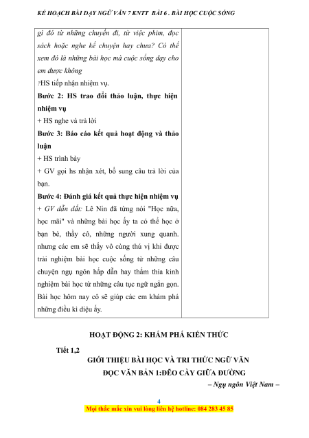 KẾ HOẠCH BÀI DẠY NGỮ VĂN 7 KNTT BÀI 6 . BÀI HỌC CUỘC SỐNG Đọc hiểu