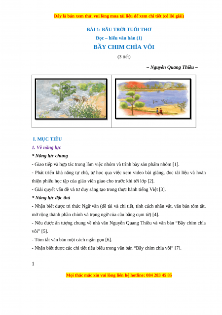 - Nhận biết được các chi tiết tiêu biểu trong văn bản “Bầy chim chìa vôi” [7]. 1