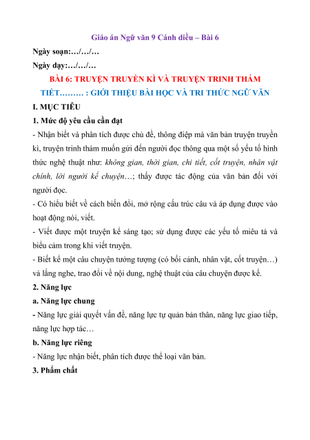 Giáo án Ngữ văn 9 Cánh diều – Bài 6 Ngày soạn:…/…/… Ngày dạy:…/…/…