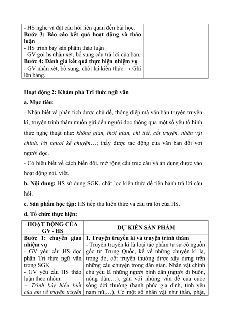 Bước 1: chuyển giao 1. Truyện truyền kì và truyện trinh thám nhiệm vụ