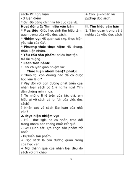 văn thể hiện những quan điểm suy nghĩ về tầm quan trọng của việc đọc sách.
