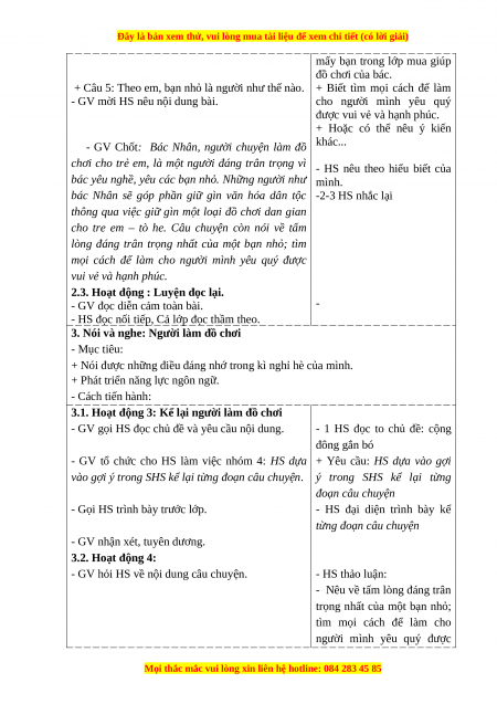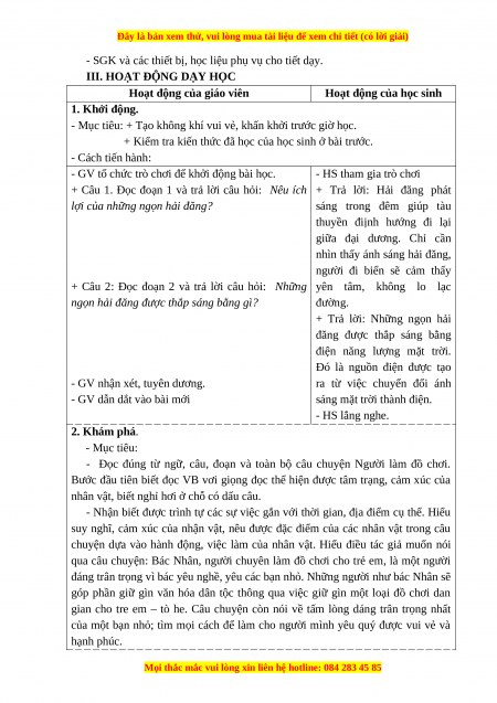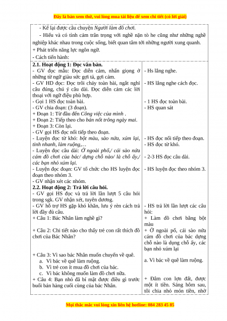 - Đọc đúng từ ngữ, câu, đoạn và toàn bộ câu chuyện Người làm đồ chơi.