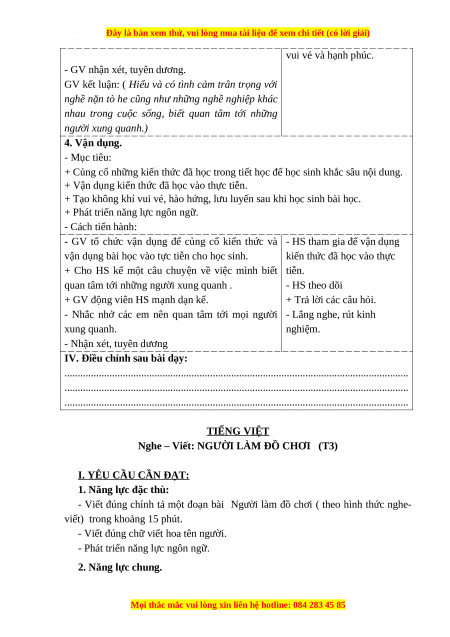 Bài 31: NGƯỜI LÀM ĐỒ CHƠI (T1+2) I. YÊU CẦU CẦN ĐẠT: 1. Năng lực đặc thù.