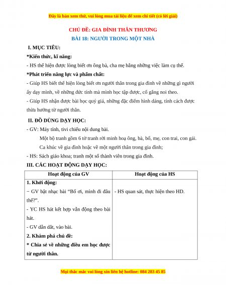 BÀI 18: NGƯỜI TRONG MỘT NHÀ I. MỤC TIÊU: