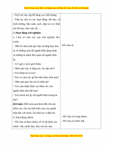 - HS: SGK; món quà mà người thân đã tặng mình.