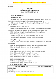 Bài 1: NGƯỠNG CỬA (T1+2) I. YÊU CẦU CẦN ĐẠT: 1. Năng lực đặc thù.