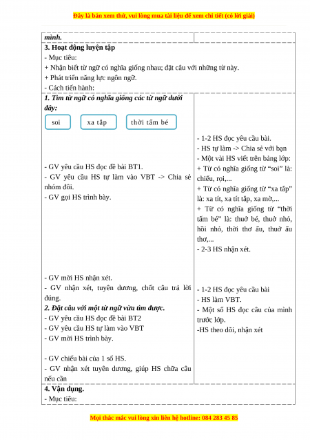 - Nhận biết từ ngữ có nghĩa giống nhau; đặt câu với những từ này.