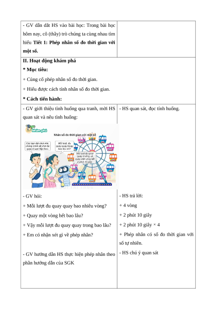 hiểu Tiết 1: Phép nhân số đo thời gian với một số.