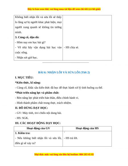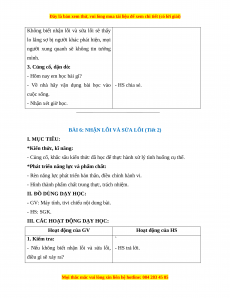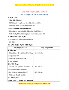 BÀI 6: NHẬN LỖI VÀ SỬA LỖI (Tiết 1) I. MỤC TIÊU: