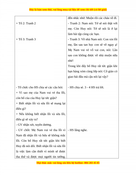 - Tranh 3: Về nhà Nam nói: Con xin lỗi