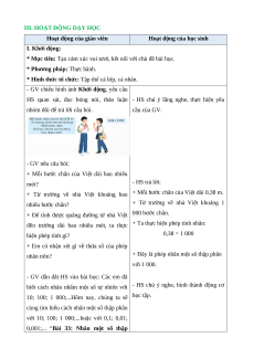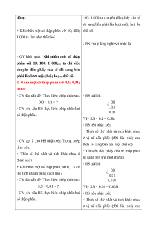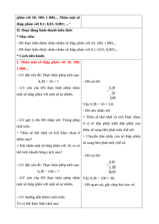 - HS thực hiện được nhân nhẩm số thập phân với 0,1; 0,01; 0,001;... * Cách tiến hành: