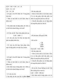 - GV yêu cầu HS thực hiện phép nhân Vậy 0,38 × 100 = 38.
