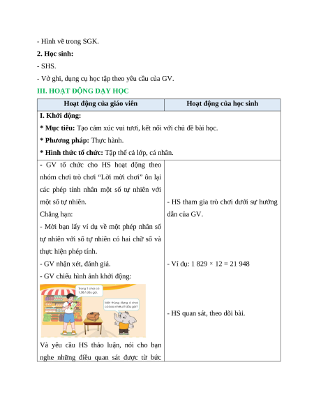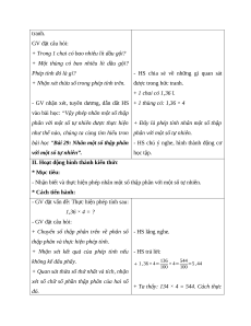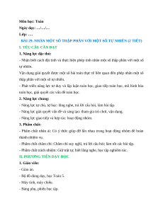 - Nhận biết và thực hiện phép nhân một số thập phân với một số tự nhiên. * Cách tiến hành: