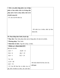 phân với một số tự nhiên được thực hiện + Đây là phép tính nhân một số thập