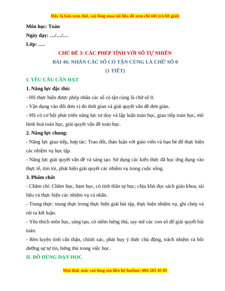 BÀI 46: NHÂN CÁC SỐ CÓ TẬN CÙNG LÀ CHỮ SỐ 0 (1 TIẾT)