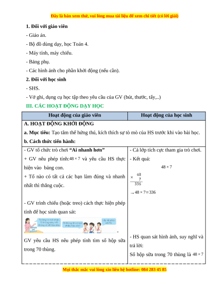 Giáo án Nhân số các số có tận cùng là chữ số 0 Toán lớp 4 Chân trời sáng tạo