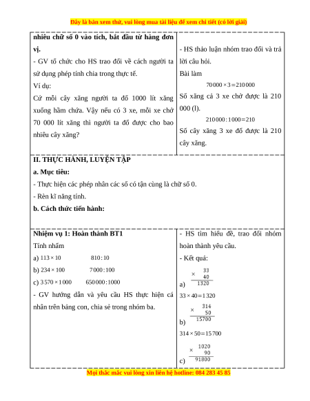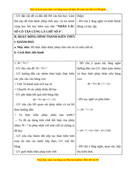 - HS thực hiện được phép nhân các số có tận cùng là chữ số 0.
