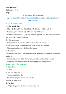 Giáo án Nhân số đo thời gian với một số. Chia số đo thời gian cho một số Toán lớp 5 Cánh diều