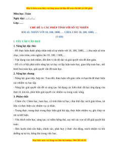 - HS thực hiện được phép nhân một số tự nhiên với 10, 100, 1000,…; chia một số tròn
