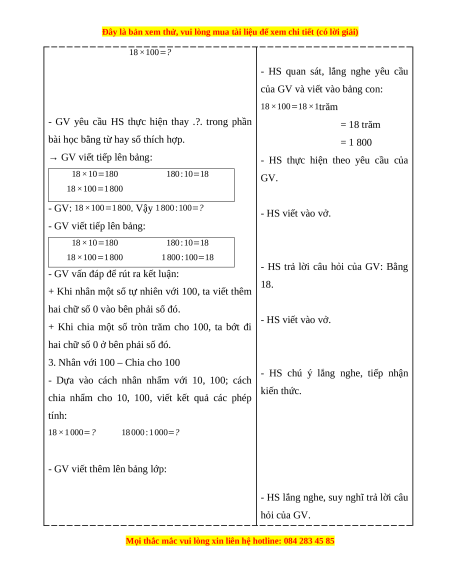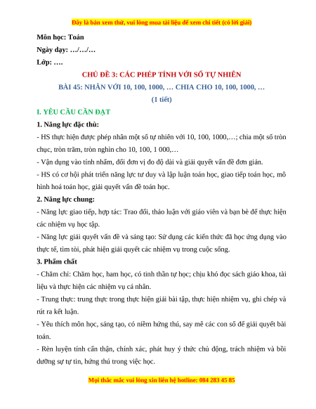 Giáo án Nhân với 10, 100, 1000, .... Chia cho 10, 100, 1000, .... Toán lớp 4 Chân trời sáng tạo