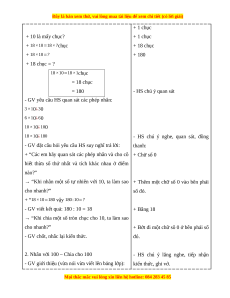 + GV: Đố bạn, đố bạn! HS: - Đố gì, đố gì? + HS: Đố gì, đố gì? GV: - 3 nhân 10 + GV: 3 nhân 10 HS: …………… + HS: 30 GV: - 6 nhân 10 + GV: 6 nhân 10 HS: ………… + HS: 60 …. …