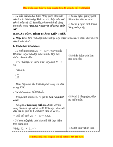 ể rong “Bài 32: Nhân v i ớ s có hai ố ch ữ đ ng ộ c h ơ c t ọ p. ậ số” B. HO T Ạ Đ N Ộ G HÌNH THÀNH KI N Ế TH C Ứ a. Mục tiêu: Bi t ế cách đ t ặ tính và th c hi ự n đ ệ ư c ợ nhân s có nhi ố u ch ề ữ s v ố i ớ số có hai chữ số. b. Cách th c t ứ i n hành: ế - GV vi t