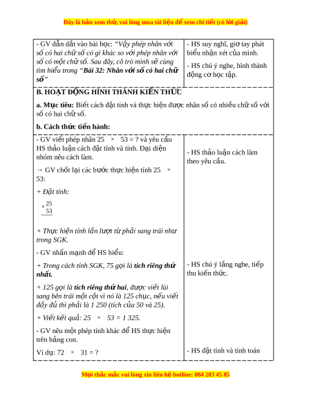 Đây là bản xem th , vu ử i lòng mua tài li u ệ đ xe ể m chi ti t (c ế ó l i ờ gi i ả ) BÀI 32: NHÂN V I Ớ S C Ố Ó HAI CH S Ữ ( Ố 2 TI T Ế )