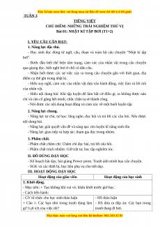 Bài 01: NHẬT KÍ TẬP BƠI (T1+2) I. YÊU CẦU CẦN ĐẠT: 1. Năng lực đặc thù.