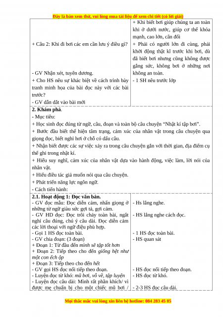- Học sinh đọc đúng từ ngữ, câu, đoạn và toàn bộ câu chuyện “Nhật kí tập bơi”.