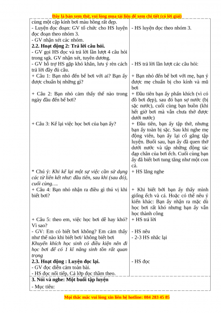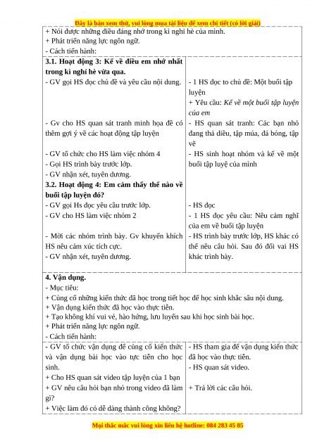 - Nói được các nội dung hoạt động và cảm xúc về một buổi luyện tập 2. Năng lực chung.