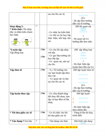 * Kiến thức: Ôn nhảy dây cá nhân kiểu chụm