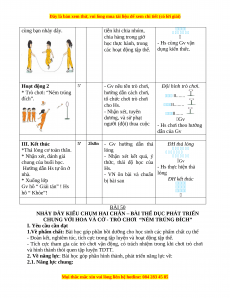- NL vận động cơ bản: Thực hiện được động tác nhảy dây kiểu chụm hai chân, bài