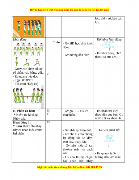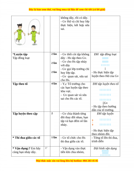 - NL vận động cơ bản: Thực hiện được động tác nhảy dây kiểu chụm hai chân, biết