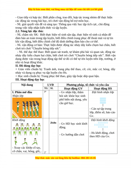 + Học sinh chuẩn bị: Trang phục thể thao, giày tập hoặc dép quai hậu.