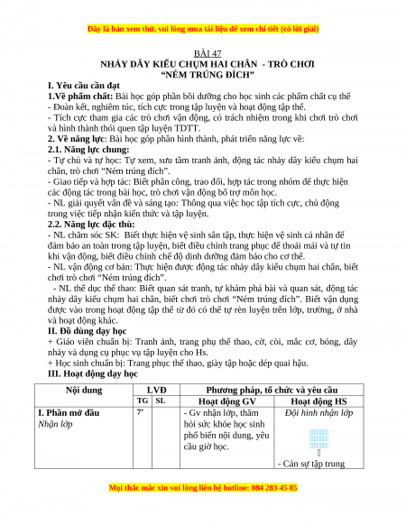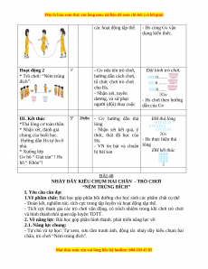 Giáo án Nhảy dây kiểu cụm hai chân Gdtc 3 Chân trời sáng tạo