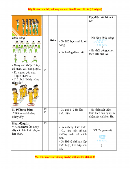 - NL vận động cơ bản: Thực hiện được động tác nhảy dây kiểu chụm hai chân, biết