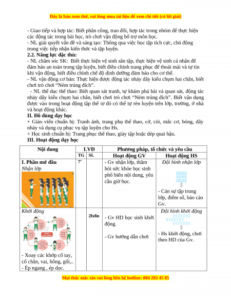 + Học sinh chuẩn bị: Trang phục thể thao, giày tập hoặc dép quai hậu.