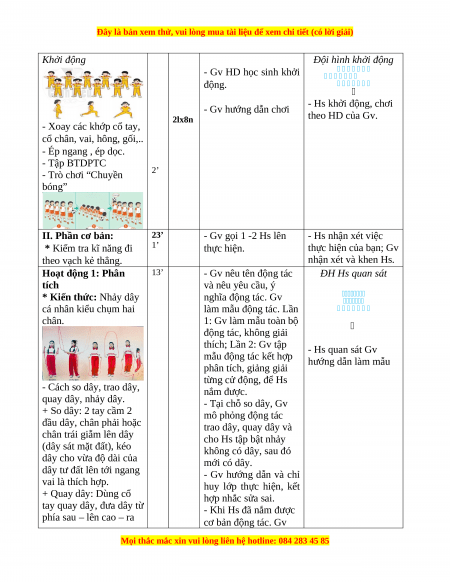 - NL vận động cơ bản: Thực hiện được động tác nhảy dây kiểu chụm hai chân, biết