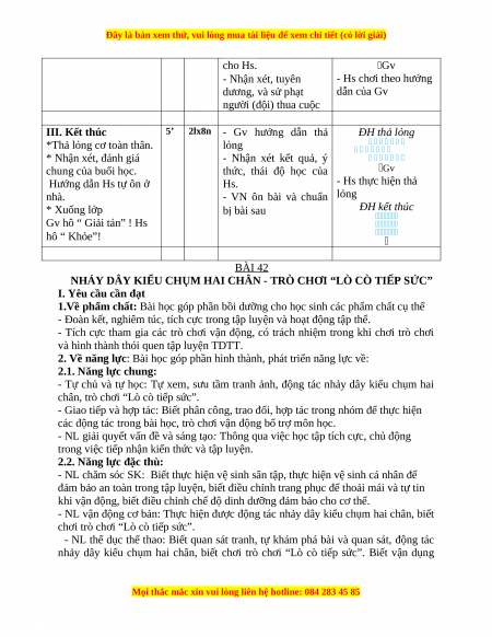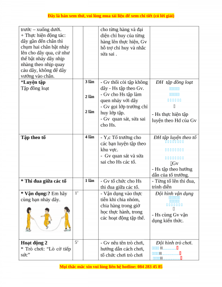 Giáo án Nhảy dây kiểu cụm hai chân - TC " Lò cò tiếp sức" Gdtc 3 Chân trời sáng tạo