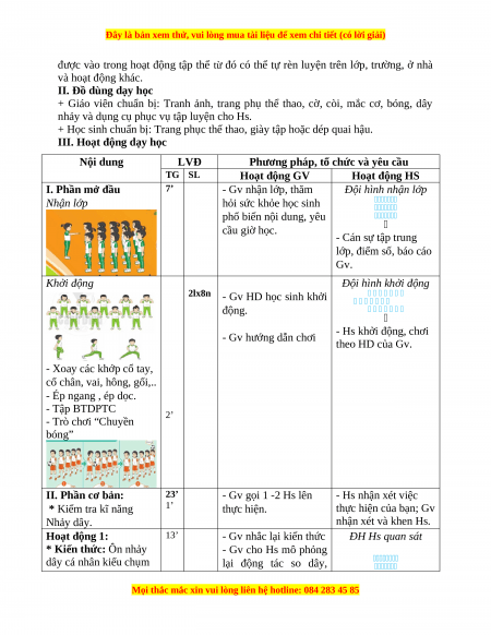 + Học sinh chuẩn bị: Trang phục thể thao, giày tập hoặc dép quai hậu.