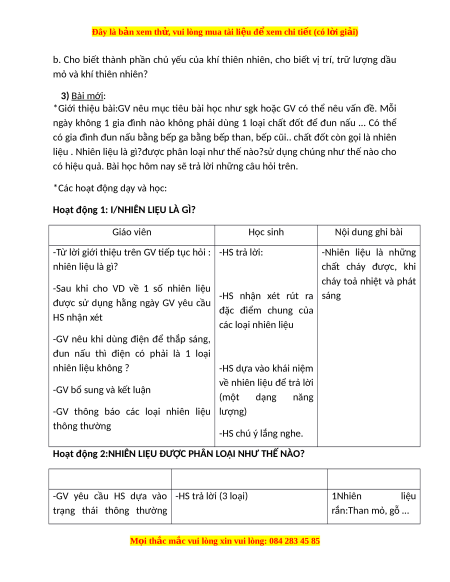 - HS biết được khái niệm về nhiên liệu, các dạng nhiên liệu phổ biến(rắn, lỏng, khí).