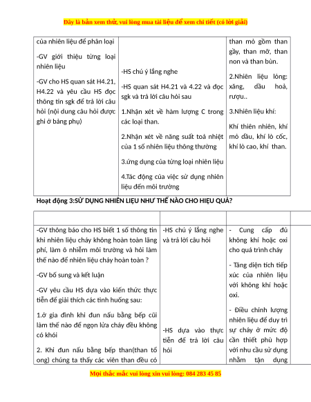 -Biết cách sử dụng được nhiên liệu có hiệu quả, an toàn trong cuộc sống hằng ngày.