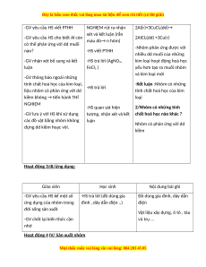 cứu các THÍ NGHIỆM để chứng -HS nhận xét hiện 4Al(r) + 3O minh các dự đoán trên 2((k) → 2Al2O3(r) tượng, viết PTHH Al -GV làm THÍ NGHIỆM nhôm 2O3 mỏng, bền trong -HS nhận lương thông không khí tác dụng với oxi tin