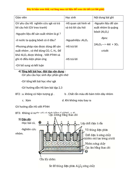 Đây là bản xem th , vu ử i lòng mua tài li u ệ đ xe ể m chi ti t (c ế ó l i ờ gi i ả ) Giáo viên Học sinh Nội dung bài ghi