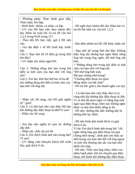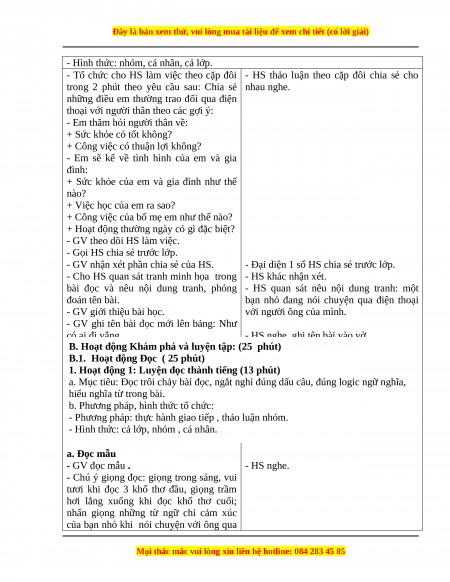 - Chia sẻ những điều em thường trao đổi qua điện thoại với người thân theo gợi ý ;