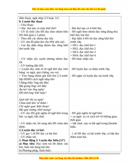 điện thoại, ngắt nhịp 2/3 hoặc 3/2 . b. Luyện đọc đoạn - Chia đoạn: